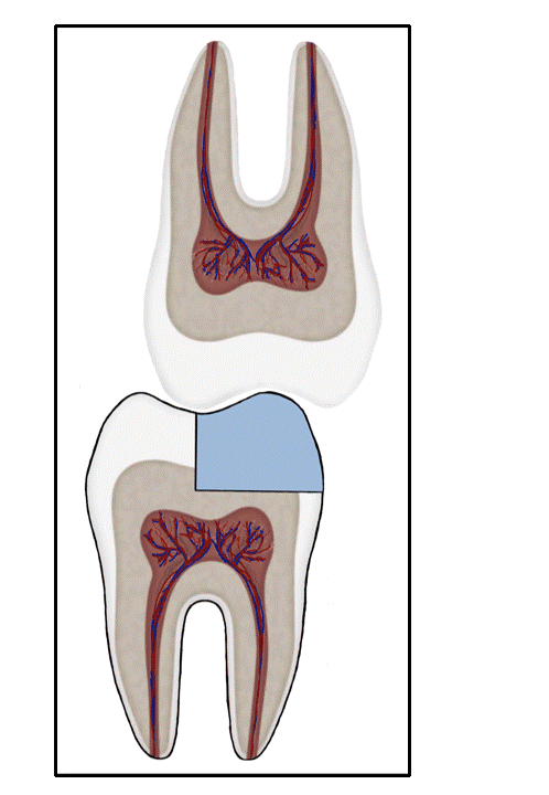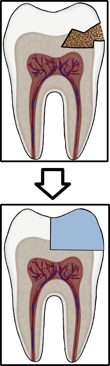 Secondary caries ( and eventually pulpitis) caused by Peripheral Rim Fractures (PRF) and marginal defects are common in teeth treated with traditional filling designs and bonding techniques. This occurs due to improper force distribution, especially during occlusal loading [1]. .