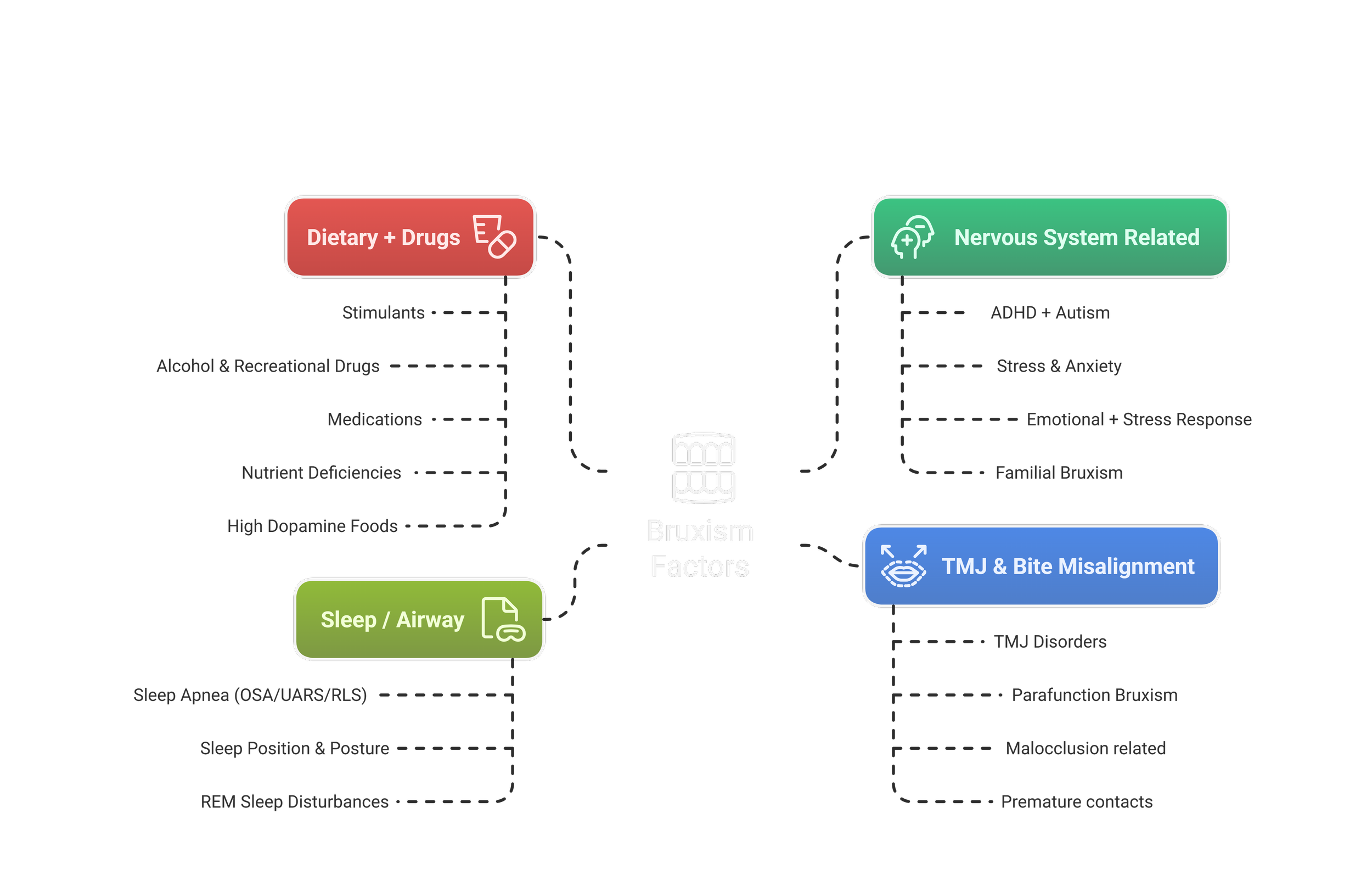 That is because they fail to address the physiological mechanisms behind bruxism: what is generating sustained motor output to the masticatory muscles, forcing the jaw to clench? Although some of it is habitual, dysregulated autonomic and neuromuscular activity, driven by an overactive nervous system, is the root cause.